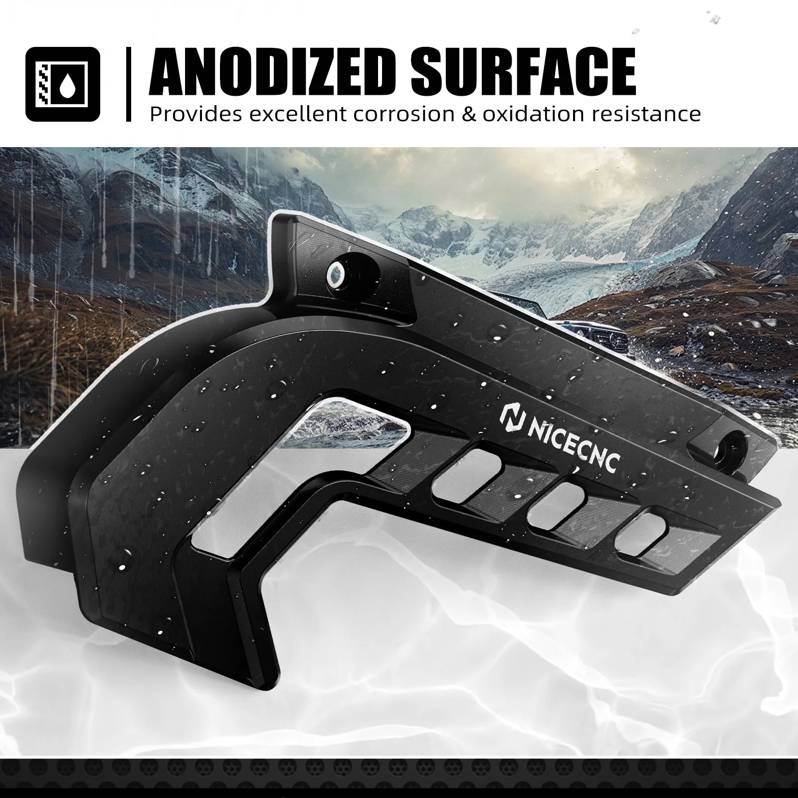 Refined Anodized Surface: Corrosion- and oxidation-resistant finish withstands mud, gravel, and harsh weather.