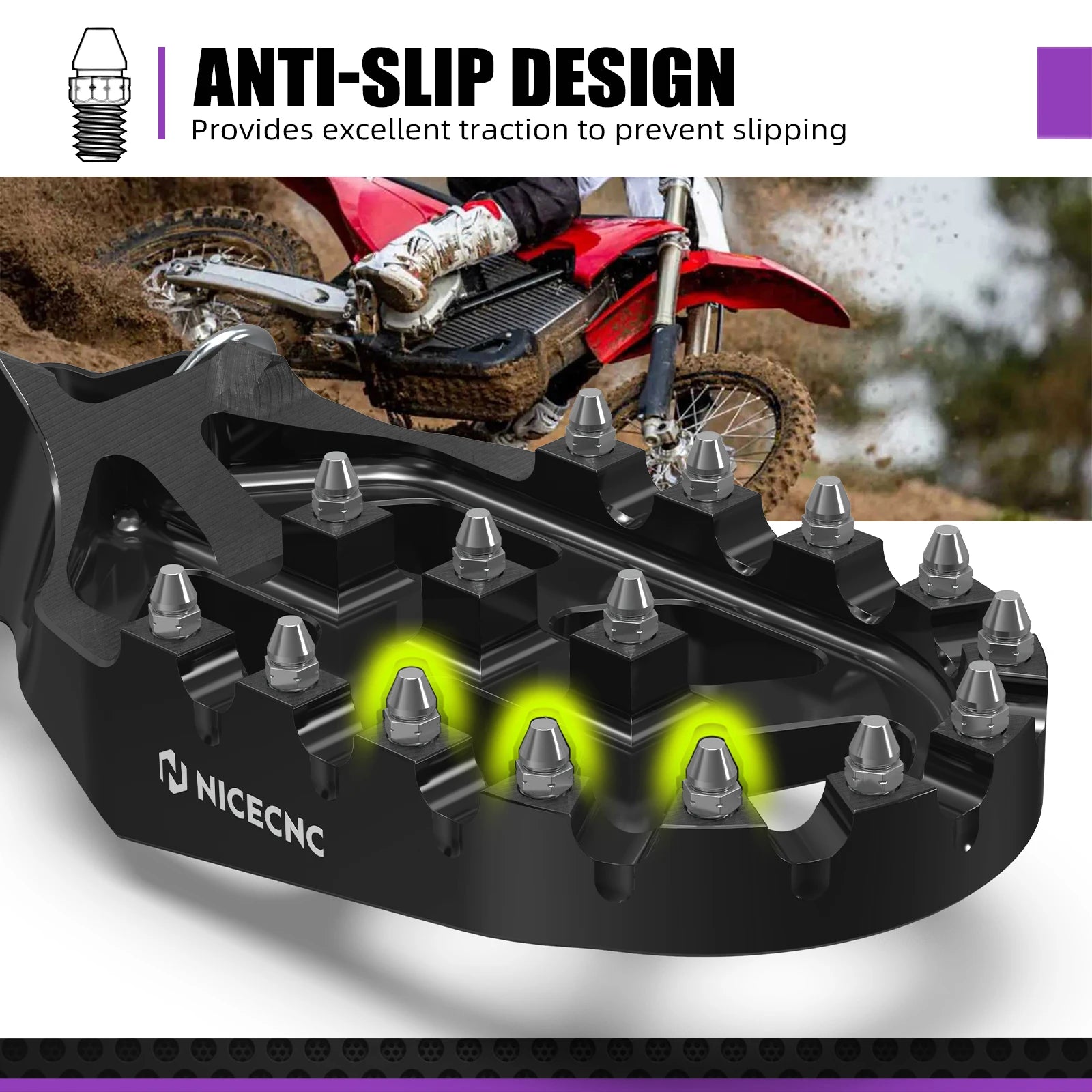 With a larger platform, offset positioning, and anti-slip design, these pegs improve your stance, reduce rider fatigue, and provide confident control over every trail and motocross adventure.