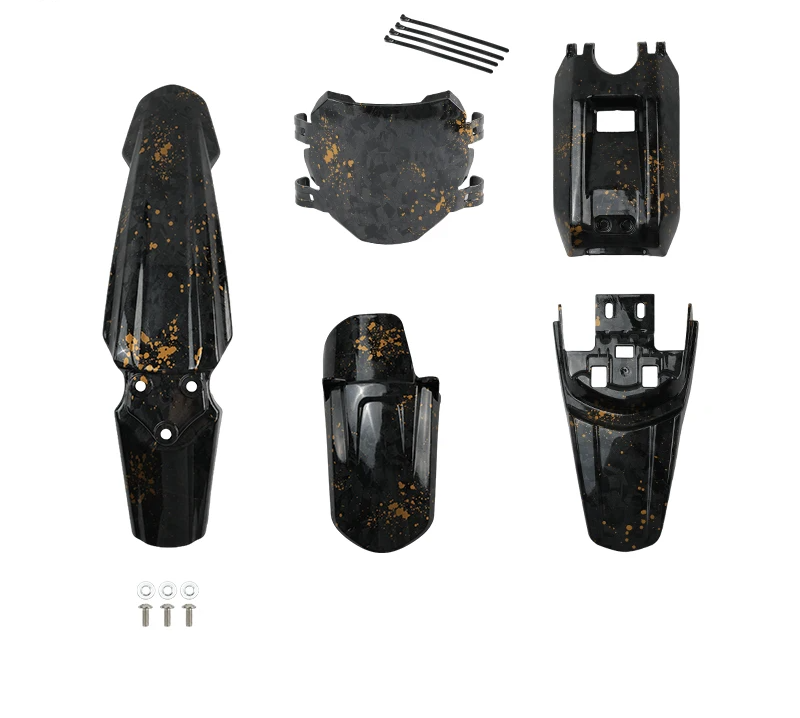 Upgrade the look of your Surron Light Bee X with these high-quality replacement plastics. Designed for durability and style, they protect your bike from road debris while adding a striking purple/gold Splatter finish.